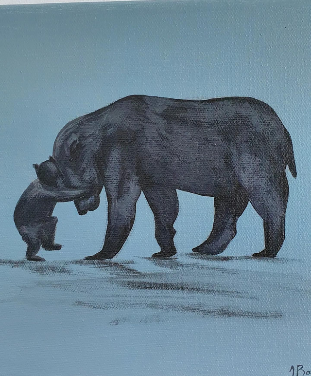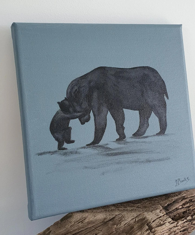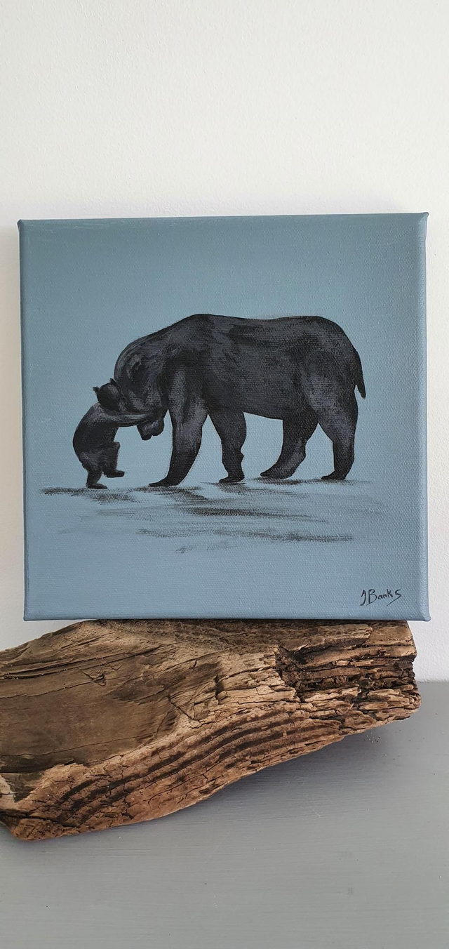 Original Small Papa Bear Painting 21.5 X 21.5 Cm